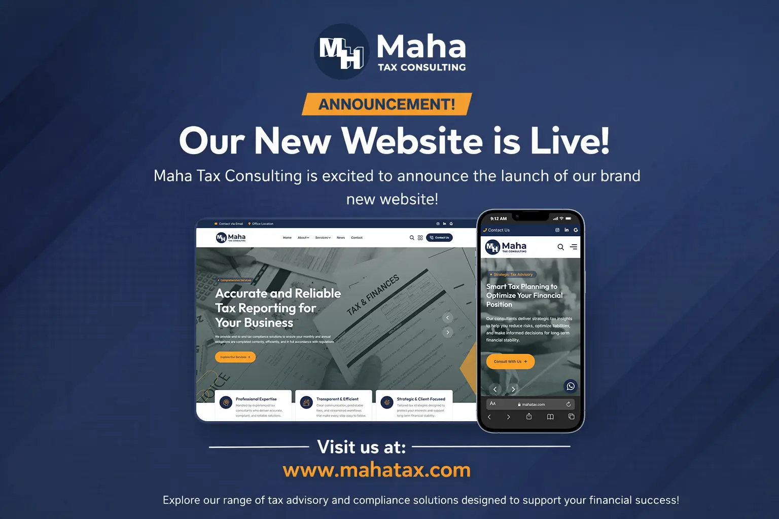 We are pleased to officially introduce the new Maha Tax Consulting website, a platform designed to strengthen our digital presence...